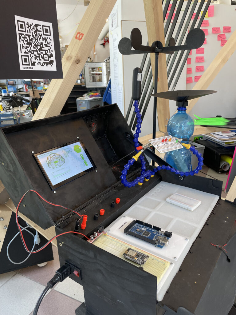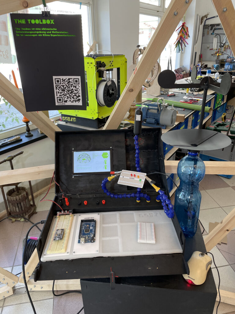 THE TOOLBOX ist eine elektronische Entwicklungsumgebung(IDE, von englisch integrated development environment) ist eine Sammlung von Computerprogrammen, mit denen die Aufgaben der Softwareentwicklung möglichst ohne Medienbrüche bearbeitet werden können) die wir aus praktikablen Gründen in eine Box gepackt haben. Das ganze wurde eine eine klassisch angehauchte Werkzeugkiste integriert um den Umgang damit zu vereinfachen und vielerorts anwendbar zu machen. Somit kann man Regenwasser vor der Haustüre oder aber auch oben am Gipfel gesammelt werden. Auf der einen Seite gibt es einfache praktische Werkzeuge-Schraubenzieher, Zangen, Stanley Messer usw. Sie bietet aber auch gleichzeitig eine elektronische Wetterstation auf Basis von verschiedenen Micro Kontrollern wie zum Beispiel Arduino und Rasberry Pie. Die TOOLBOX beinhaltet Werkzeuge zur Klima Analyse sowie ein Windmesser, Niederschlagsmesser sowie unterschiedliche Sensoren zur Analyse. Mit dem Rasberry Pie hat man auch die Möglichkeit weitere Applikationen zu basteln. Man kann damit auch einen Wetterballon steuern oder was einem sonnst noch so einfällt um das Klima zu beobachten. Die TOOLBOX bietet die nötigen Tools um neue Sensoren und Messgegstäde zu bauen, damit haben wir eine breite Enticklunsoberfläche entwickelt, die mann durch Ihre handliche Verpackung- eine Werkzeugkiste auch mit auf die Expedition nehmen kann. Es ist sozusagen ein Klima Experimentierkasten, den man auch je nach Klimazone erweitern kann somit gibt es keine Grenzen wie und wo man die TOOLBOX anwendet.Wir haben im Rahmen eines Workshops an der Vogelsangschule Saalfelden zum Thema digitale Wetterstation die TOOLBOX mit den Schülern der Sekundaria(12-15 Jahren) ausprobiert und getestet. Wir wollten bei diesem Projekt bei den Schülern Anhand eigener Erfahrungswerte ein Bewusstsein erschaffen das sich etwas in unserem Verhalten ändern muss. Dazu möchten wir mittels der Verwendung der TOOLBOX dieses Thema begreifbar und verständlicher machen. Mit den gesammelten Daten(1. Luft Temperatur 2. Regen 3. Luftfeuchtigkeit 4. Bodenfeuchte 5. Boden Temperatur 6. Sonnenstunden 7. den barometrischen Luftdruck) Die Schülerinnen und Schüler haben anhand eigener Beobachtung viele der Prozesse des Wetters verstanden und diverse Thematiken besser nachvollziehen können. Es wurde ihnen bewusst warum das Thema der Klima Erwärmung nicht ignoriert werden sollte. sehen die Schüler selbst wie das Klima sich entwickelt, wir denken es ist wichtig das die Erfahrungswerte auf faktenbasierter Analysen basieren und in seinen Grundzügen nicht auf Glaubensätzen oder Meinungen. Wir möchten mit der TOOLBOX darauf hinweisen das was jeder Einzelne tut relevant ist und wir Emissionen täglich vermeiden können.